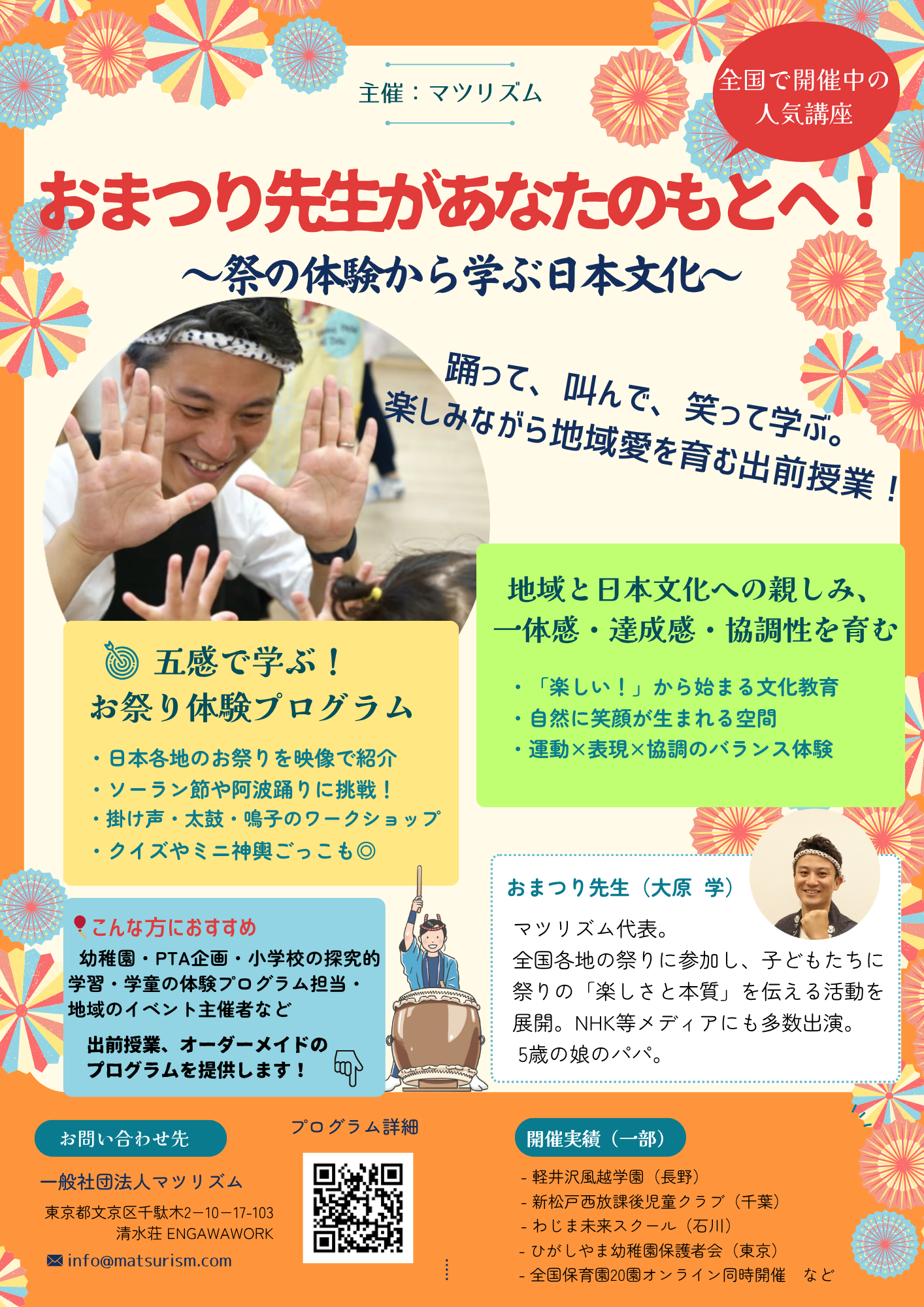 全国で話題の体験型プログラム「おまつり先生」が、あなたの学校・園・地域に伺います!