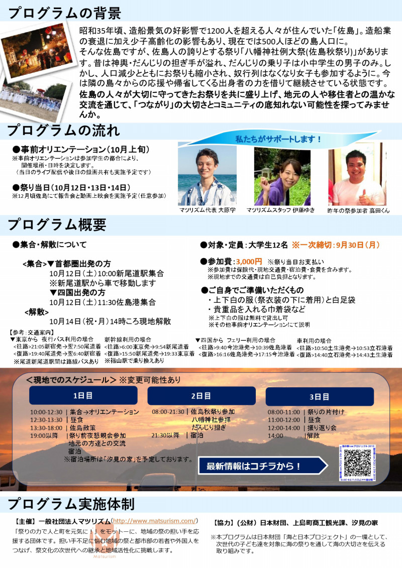 【お知らせ】大学生参加者募集中!! 海の祭で『つながる』を体感する in 瀬戸内 佐島