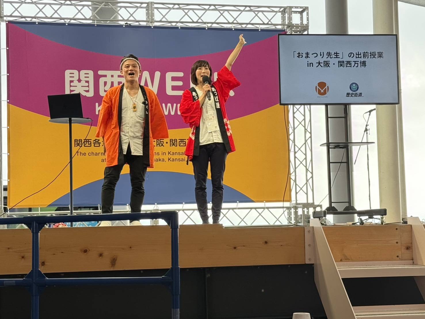 10月5日(日)、大阪・関西万博にて、関西広域連合の企画『KANSAI 伝統文化 EXPO』にて、マツリズム代表・大原が「おまつり先生」として登壇、45分のステージパフォーマンスを行いました。